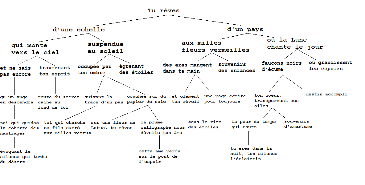 tu dis : "Je n'ai jamais vu le sable entre les pages, ni les corbeaux face au soleil." tu dis : "Sans ça, renouveler les images, et mordre dans le ciel." tu dis : "Non que les cassures...