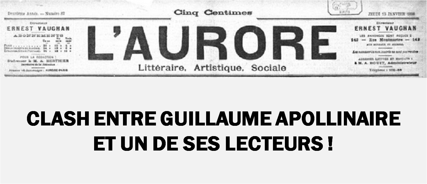COURRIER DES LECTEURS du 14 mai 1913 La semaine dernière, vous lisiez dans L'Aurore le courrier d'un lecteur révulsé par l'oeuvre Alcools de Guillaume Apollinaire. Aujourd'hui, nous avons la chance de publier la réponse du poète lui-même, qui a eu la...